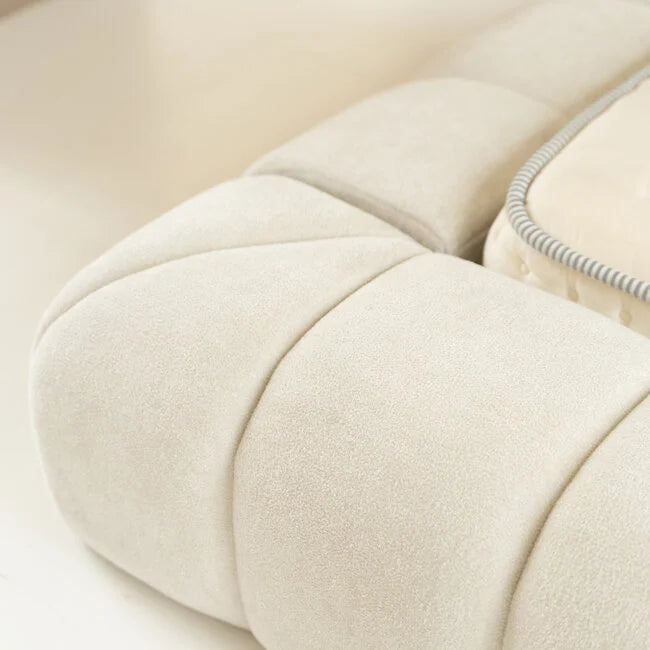 Le revêtement doux en tissu Teddy Bouclé , dans une teinte beige chaude, confère à ce meuble un charme à la fois douillet et raffiné, s'harmonisant sans effort avec tout intérieur élégant.