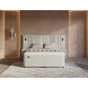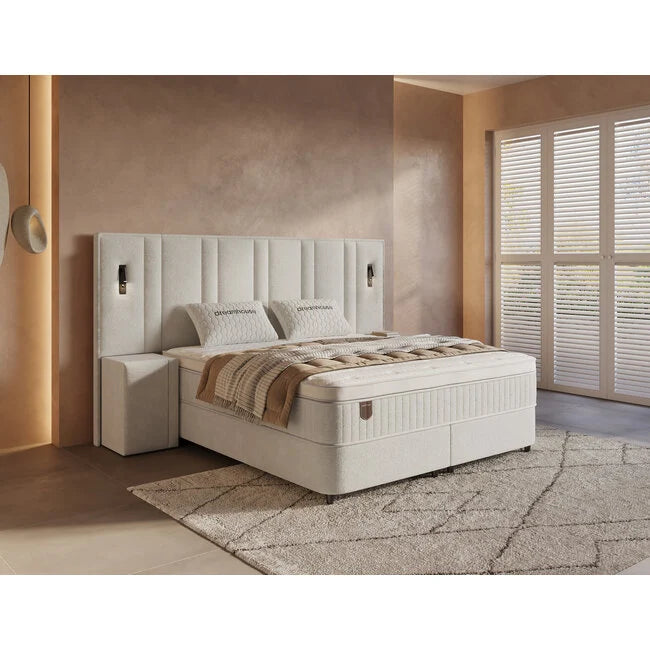 Disponible en 160x200 cm et 180x200 cm , le Rocco Boxspring incarne l'harmonie parfaite entre luxe, innovation et tranquillité — conçu pour ceux qui dorment non seulement pour se reposer, mais pour se faire plaisir.