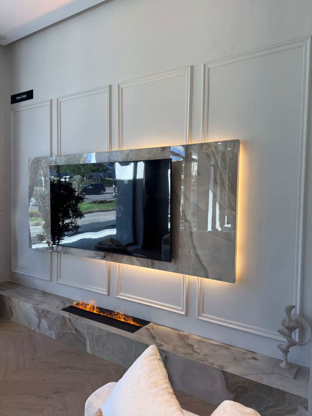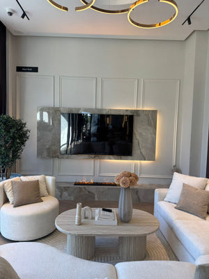 Le Cinewall New York allie avec raffinement élégance contemporaine et sophistication intemporelle. Orné de luxueux carreaux imitation marbre et encadré de panneaux décoratifs, il crée un point focal élégant qui transforme tout espace de vie.