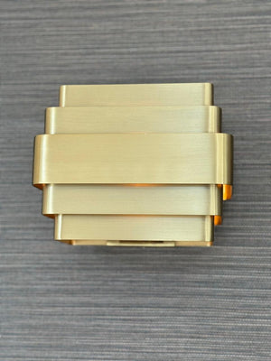 Apportez une élégance intemporelle à votre intérieur avec l' applique murale Aurora en laiton . Fabriquée en laiton doré brossé, cette élégante applique incarne la sophistication moderne avec son design géométrique superposé. Sa forme sculpturale crée un jeu d'ombres et de lumières captivant, apportant chaleur et profondeur à n'importe quelle pièce.