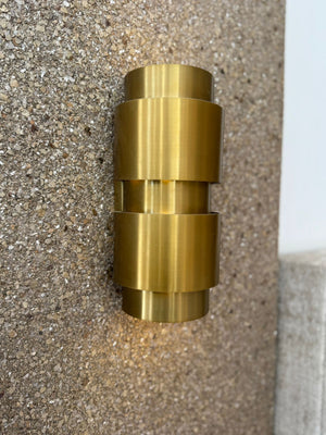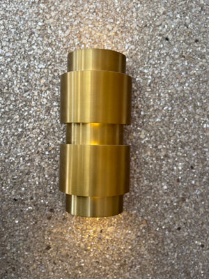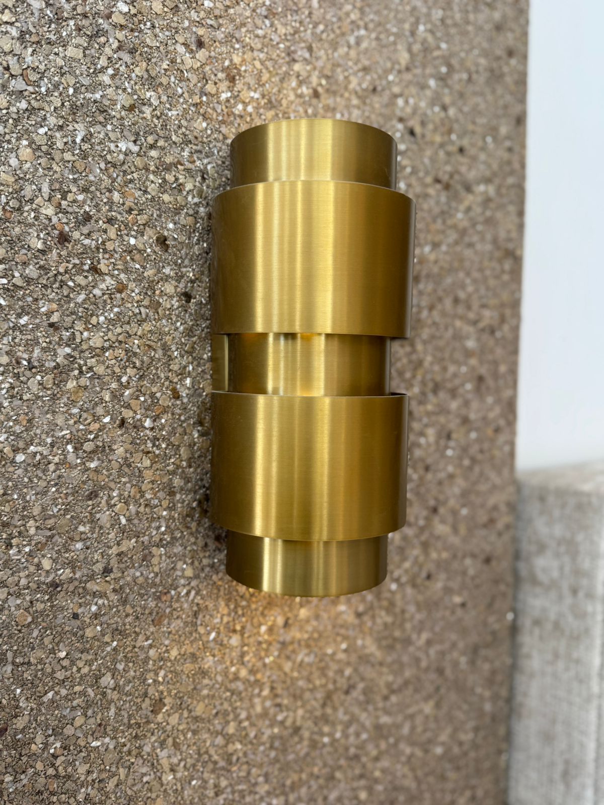 L' applique murale Elysian en laiton incarne la sophistication pure, alliant élégance intemporelle et design moderne. Fabriquée en laiton brossé de qualité supérieure, sa silhouette cylindrique et sa superposition architecturale créent un jeu de lumière saisissant, diffusant un éclairage vers le haut et vers le bas pour une atmosphère chaleureuse et raffinée.