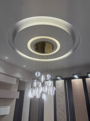 Chaque élément délicat reflète un équilibre raffiné entre géométrie et luminosité, créant une ambiance céleste à la fois intemporelle et contemporaine. Qu'il soit placé dans un hall d'entrée majestueux, une salle à manger luxueuse ou un hôtel-boutique, le Véla Aurea captive l'attention tout en sublimant harmonieusement l'atmosphère de chaque espace.
