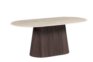 Table à manger exquise en travertin et bois – 220 x 110 x 75 cm