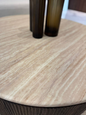 Table basse ronde – Travertin et bois de manguier (Ø100 cm)