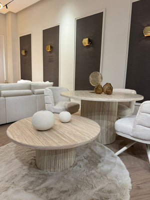 Ajoutez une touche de sophistication naturelle à votre salon avec cette magnifique table basse en travertin. Dotée d'un plateau parfaitement rond, elle met en valeur les veines et les textures uniques du travertin authentique, rendant chaque pièce unique.