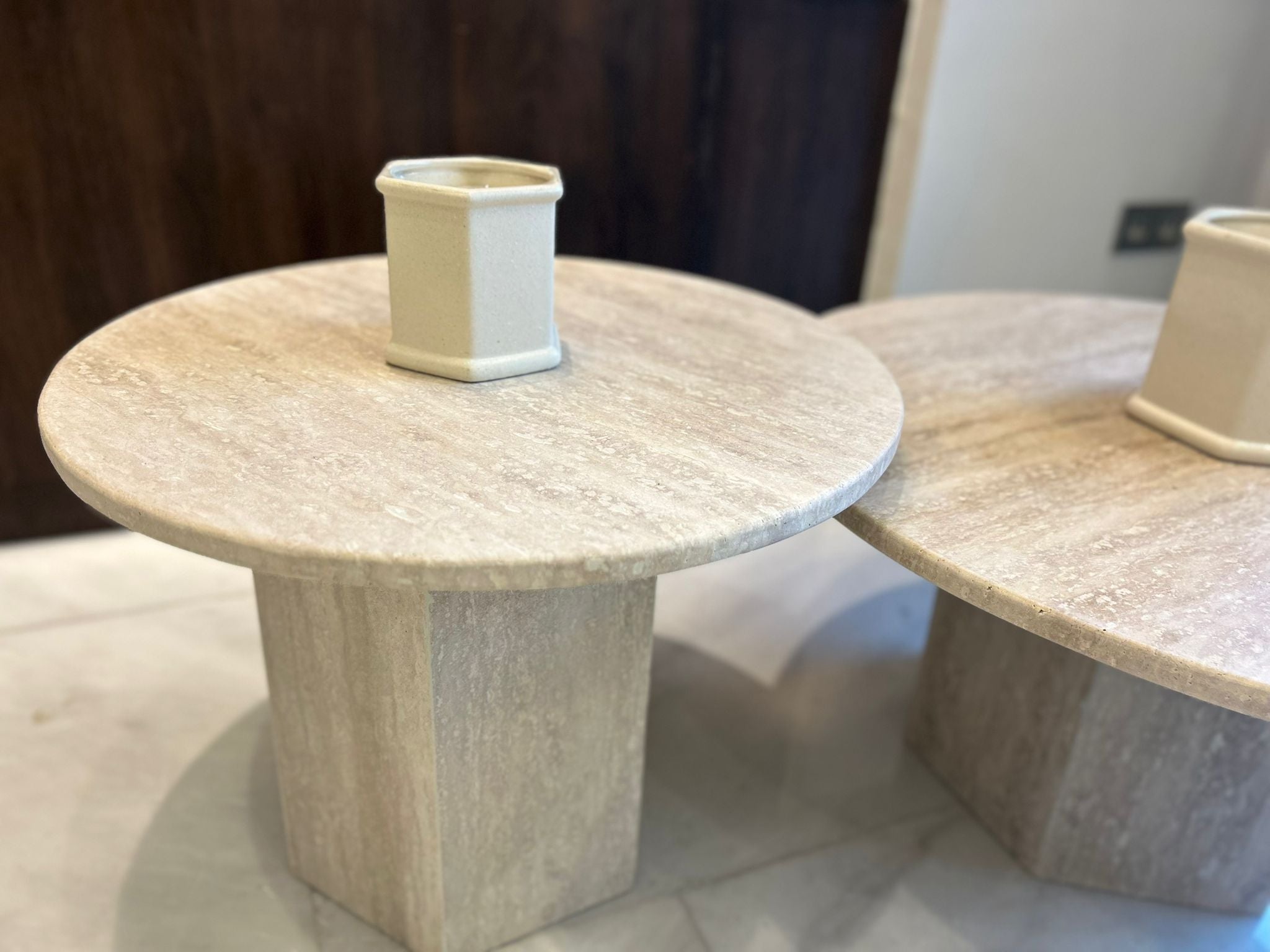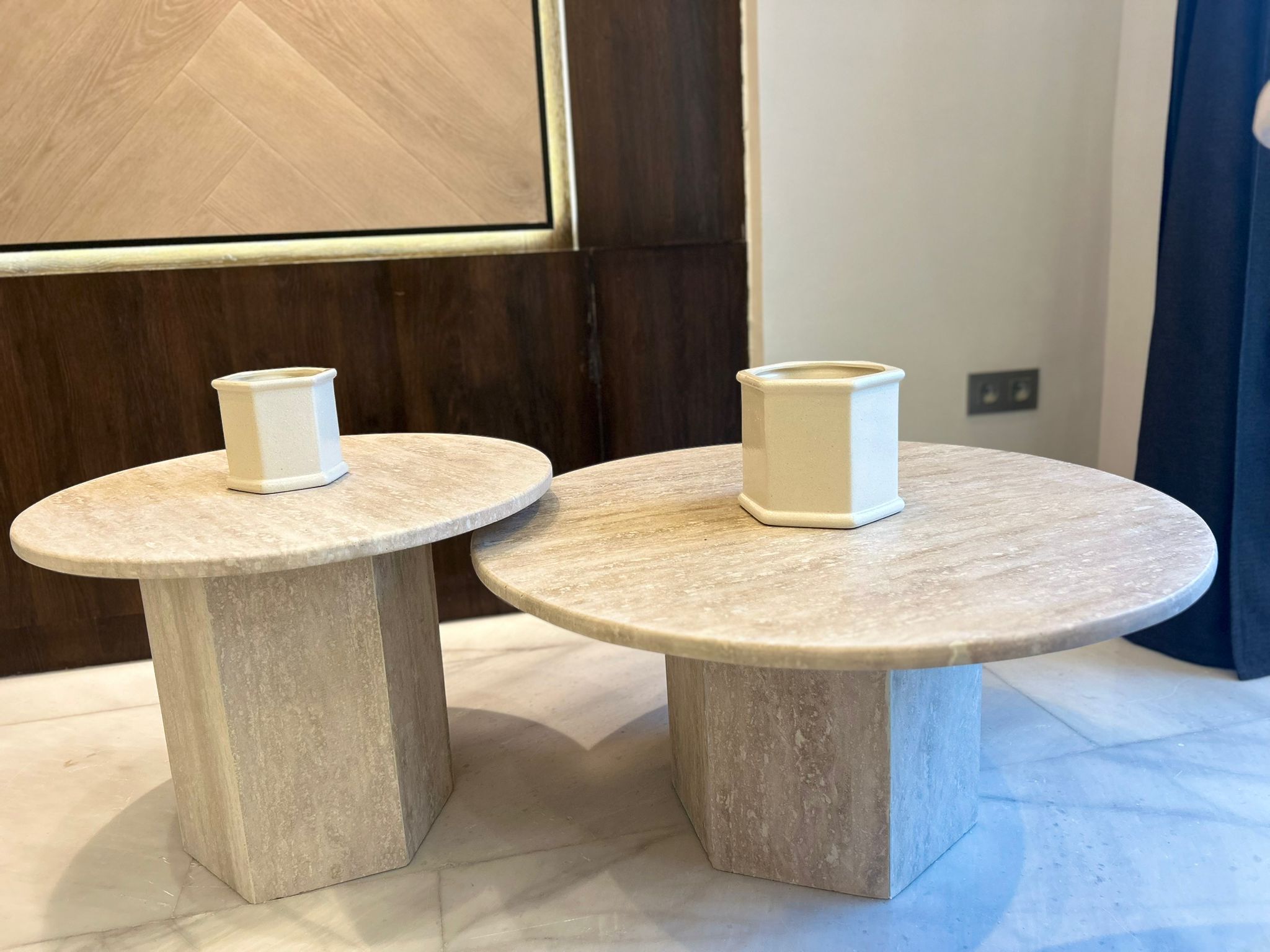 Accueil Ensemble de table basse en travertin naturel — Minimalisme sculptural